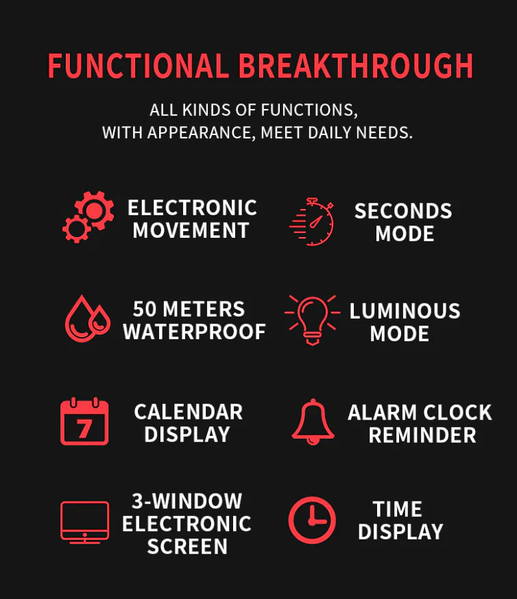- ⌚ MULTI-FUNCTIONAL: Dual Timezone, Calendar Day and Date, Alarm, Water Resistant, LED Display, Back Light, Shock Resistant, Stop Watch.